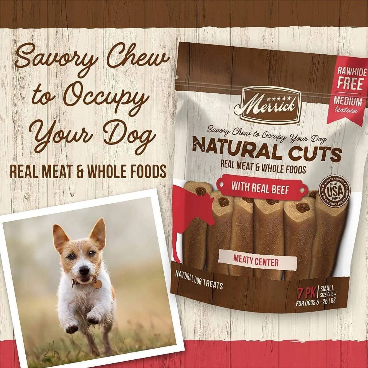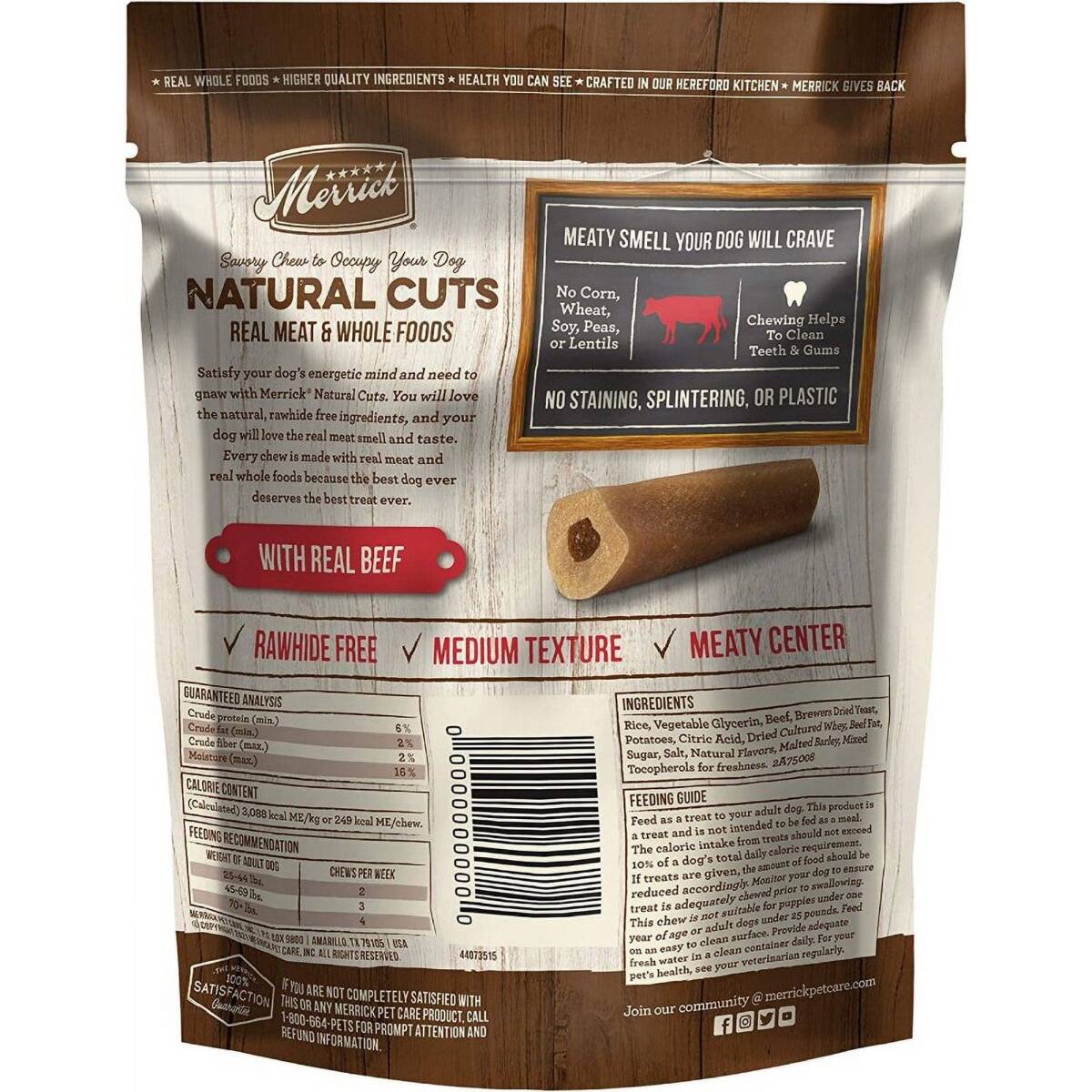 - Merrick Natural Cuts Rawhide Free Dog Treats, Medium Texture Filled Dog Chew With Real Beef For Medium Dogs