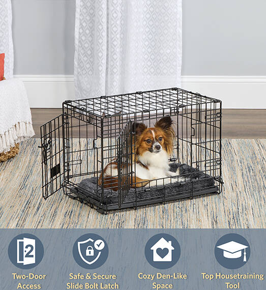 Contour® Crates wire dog crates provide a personal, den-like space for dogs and are useful for housebreaking, puppy training, and travel. The safety and security of the slide-bolt latch combines with the exclusive LapLock Technology, which creates multiple lock points around the door. The easy-to-install divider panel can be used to adjust the living space for a puppy. Contour® Crates come in single- and double-door options with seven sizes for toy breeds to extra-large breeds.