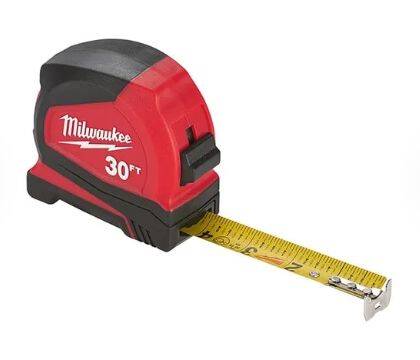 Our 30 ft. Compact Tape Measures are Nothing But Heavy-Duty. The compact tape features Nylon Bond Blade Protection and a 5-Point Reinforced Frame, giving you the Longest Life by resisting contamination wear and increasing protection when dropped. To increase your productivity on the job site, the professional tape measures feature a fractional scale for easy reading and an optimized hook designed for scoring. Milwaukee® compact measuring tapes have stamped steel belt clips and are lanyard ready, giving you additional utility on the job site.