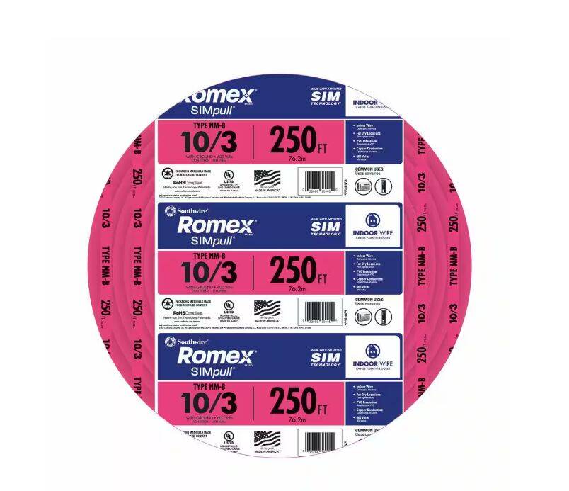 250-Feet 10-Gauge/3 Solid Pink Romex® SIMpull® CU NM-B with Ground Wire Coil