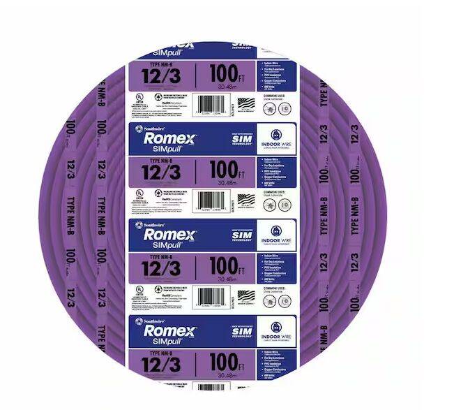 100-Feet 12/3 Solid Purple Romex® SIMpull® CU NM-B With Ground Wire Coil