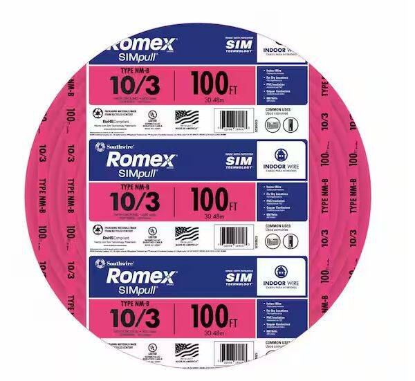 100-Feet 10/3 Solid Romex® SIMpull® CU NM-B W/G Wire Coil