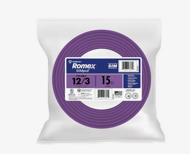15-Feet 12/3 CU NM-B Electrical Cable With Ground