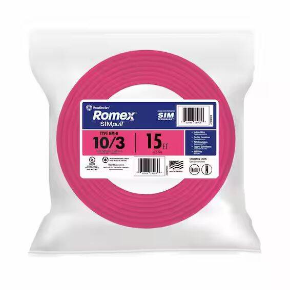 15-feet 10-Gauge/3 Solid Romex® SIMpull® CU NM-B with G Wire Coil