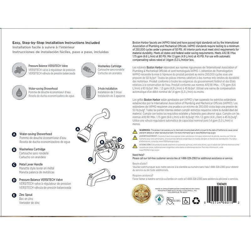 Faucet Feature Pressure Balance VERSITECH® Valve Included