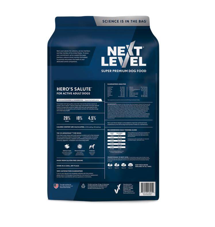 Next Level salutes the veterans, service members and their families of the United States. To honor your commitment, we’ve created this super premium, science-driven nutrition formulated to promote and protect the health of your dedicated canine companions.