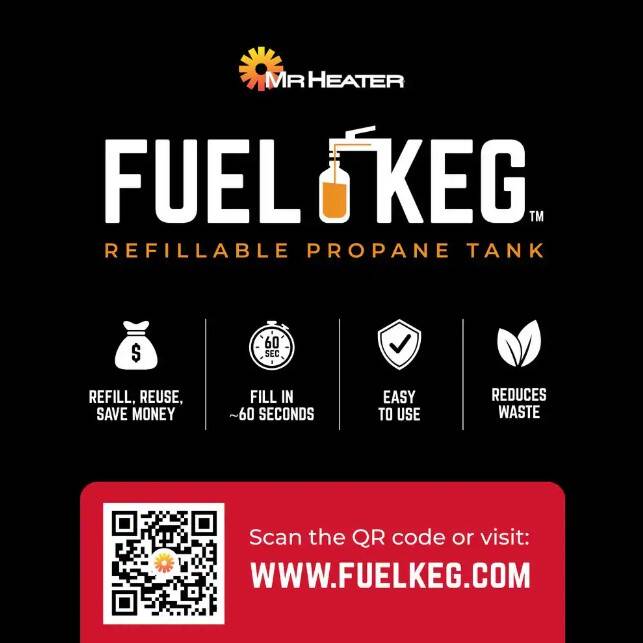 • Use Mr. Heater Refillable 1 lb. / 16 oz. Propane Fuel Kegs to reduce the amount of disposable 1 lb. propane cylinders that are polluting our environment.