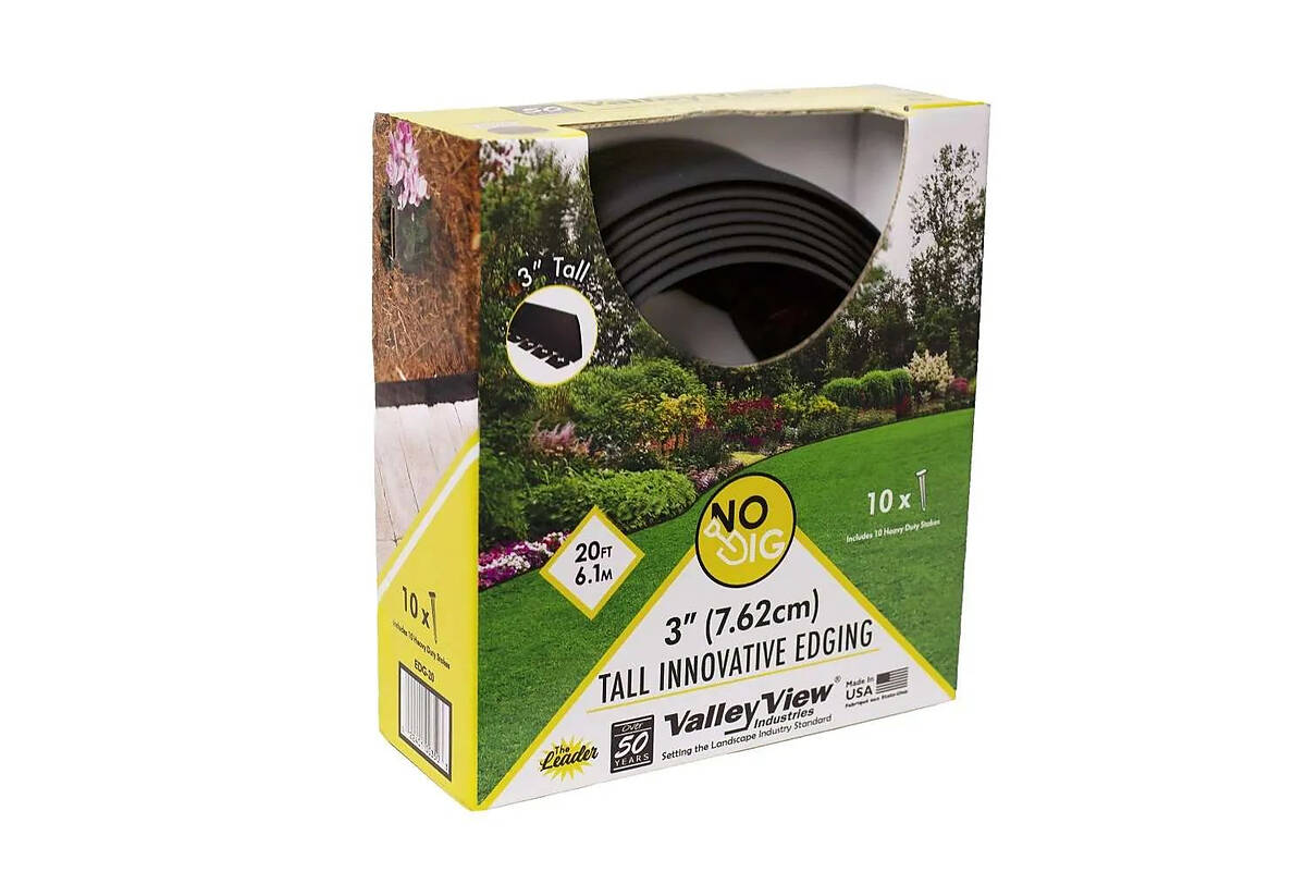 Perfect for ringing around trees or bordering driveways and sidewalks, this 3-inch edging allows for more bedding material, stone and mulch than the shorter height no-dig edgings on the market.