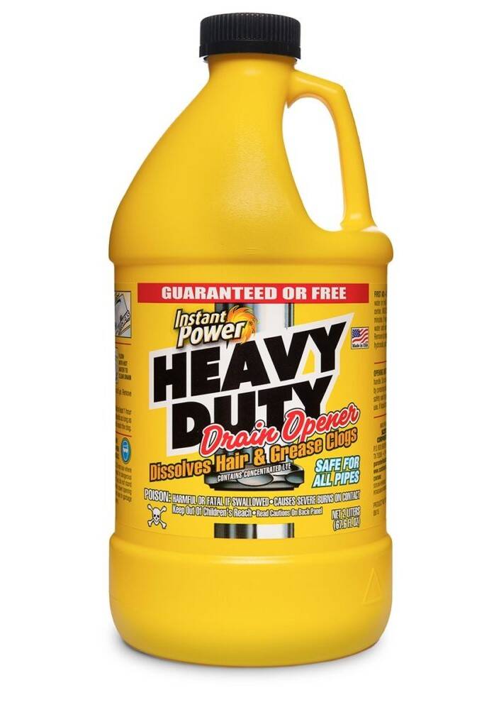 Heavy Duty Drain Opener is the economical treatment for bathroom and kitchen drain clogs. We recommend that Heavy Duty Drain Opener be allowed to stay in the drain overnight. The longer it remains in the drain the more drain clogging matter it will dissolve.