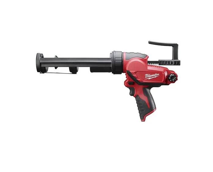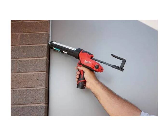 The M12 Caulk and Adhesive Gun is the lightest, most compact cordless powered caulk gun on the market today.  With up to 400 lbs. of pushing force the M12 Caulk Gun easily dispenses everyday construction sealants and adhesives.  The combination Variable Speed Trigger and Max-Speed dial allow for total application speed control.  The 360 degree Rotating Collar delivers maximum control around turns.  The tool also features auto-reversing anti-drip, a seal puncture tool and durable hang hook for versatility on the job. This configuration is designed to work with 10oz. cartridge style material containers.  Milwaukee also offers accessory conversion kits to change to 20oz. sausage packs (48-08-0905) and Quart cartridges (48-08-0910).