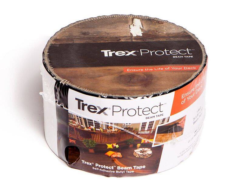 Trex Protect is a non-skid, self-adhesive deck flashing tape that is designed to shield the tops of joists, rim joists, beams and ledger board from moisture that can lead to the development of rot and wood decay and the loosening of deck screws and fasteners. Trex Protect works on horizontal and vertical surfaces and is applied as a “cap” (vs wrapping), which allows the wood to breathe. Trex Protect Joist Tape and Beam Tape have a non-skid surface making it easier and safer to walk across during construction. Not to be used with Trex RainEscape Deck Drainage System.