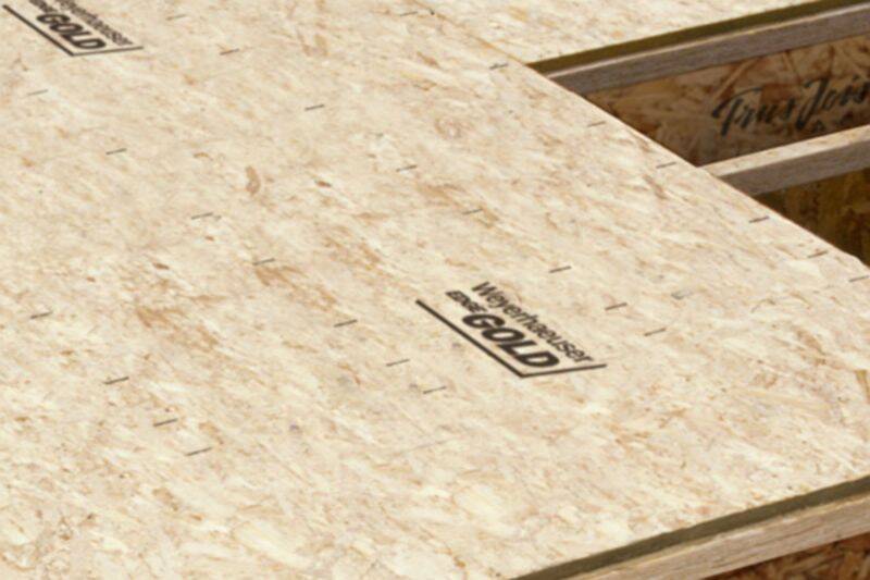 Each panel is fully sanded to provide uniform appearance and tighter thickness tolerances. The face of every panel is stamped with a fastening template and each bundle ships face-up, ready for easy and accurate installation right off the truck. Weyerhaeuser Edge Gold panels install flat, stay flat and look great for customer walkthroughs.