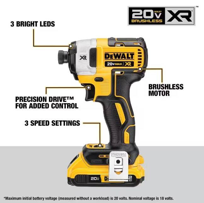 | Includes | (1) DCD791 1/2-Inch Drill/Driver, (1) DCF887 1/4-Inch Impact Driver, (2) DCB203 Lithium-Ion Batteries, (1) Charger, (2) Belt Hooks, (1) Contractor Bag |