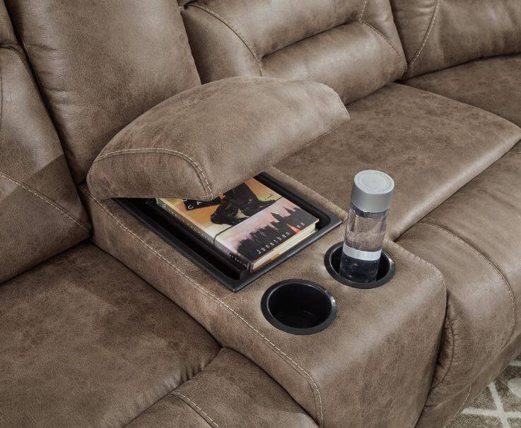 • Includes 3 pieces: left-arm facing power reclining loveseat with console, wedge and right-arm facing power reclining loveseat
