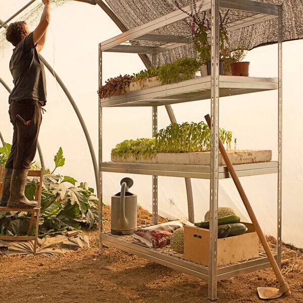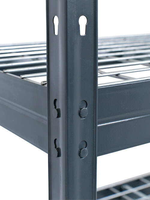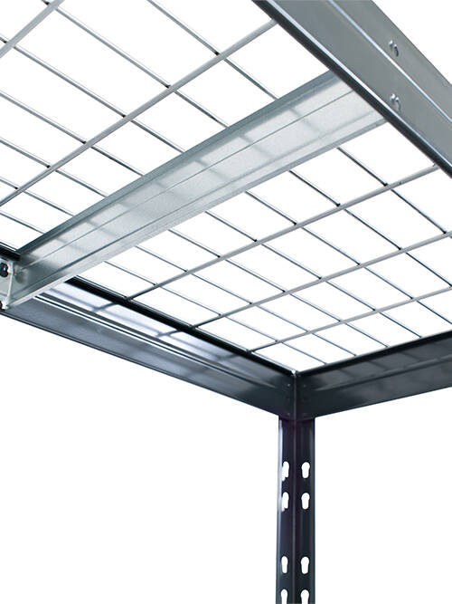 This metal shelving with galvanized mesh shelves is extremely strong, easy to clean and rust resistant. It is the perfect solution for storing liquids and organizing tools, machinery and other accessories in the garage, basement, storage room, warehouse, workshop or any other type of business.
