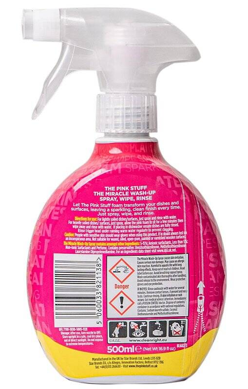 Let The Pink Stuff foam transform your dishes and surfaces, leaving a sparkling, clean finish every time. Just spray, wipe and rinse.