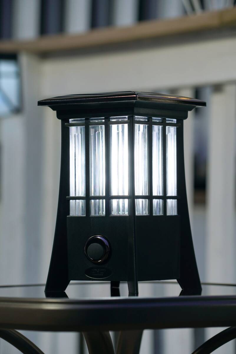 New from PIC! A one-of-a-kind bug zapper. The PIC Patio Lantern offers an effective solution for attracting and killing flying insects while enjoying the outdoors. The lantern is weatherproof and uses the power of the sun to zap flying insects with 600 volts. It has two lighting modes: LED lantern and our patented flickering flame LED that provides ambient lighting for your patio or deck. Use the power button to toggle through the lighting mode you prefer. To charge the solar battery, the device must charge in direct sun. Black with gorgeous chrome details and enhanced flicker flame effect windows. Patent pending in the US and abroad.