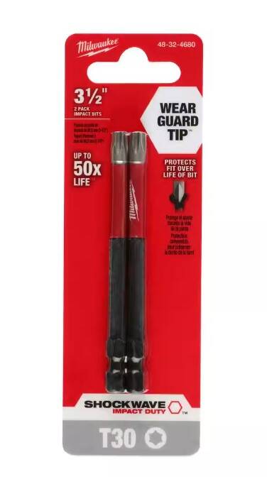 SHOCKWAVE™ Impact Duty™ Torx Bits are engineered to be the most durable, best fitting driver bits on the market. The Wear Guard Tip™ delivers increased wear resistance which protects the fit over the life of the bit. The Shockzone™ is optimized for for each tip type and length of driver bit to absorb peak torque and prevent breaking. The Custom Alloy76™ has customized steel and heat treatment per tip type to extend the life of the driver bits, providing up to 50X life vs. competitive impact driver bits. The MILWAUKEE® SHOCKWAVE™ driver bits are built to deliver extreme durability for the most demanding applications.