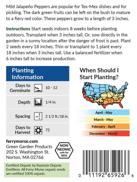 Jalapeno Mild Organic Pepper Seed