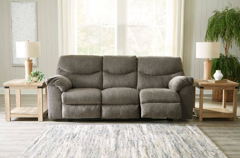 Sincere in its styling, the Alphons reclining sofa invites a relaxed sensibility into your space. Its neutral upholstery has a universal appeal, with pull-tab reclining making it easy to kick back in comfort. Providing high-quality functionality at an affordable price, this sofa marries well with a myriad of design aesthetics.