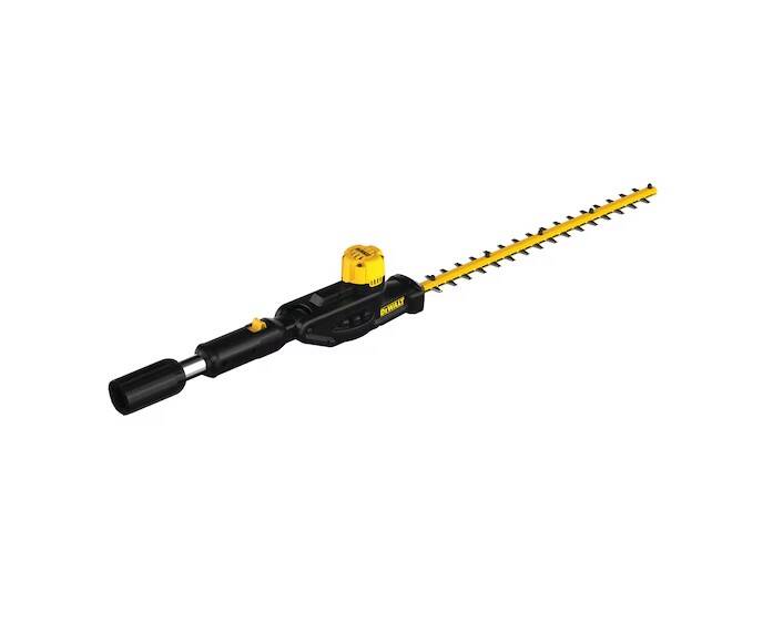Cut through a variety of landscape overgrowth with the Pole Hedge Trimmer Head. It is compatible with the 20V MAX* Pole Hedge Trimmer (DCPH820) and 20V MAX* Pole Saw (DCPS620), both sold separately. Its 22 in. hardened-steel, laser-cut blades are engineered for clean, fast cuts on branches up to 1 inch thick. The 7-position 180-degree articulating head allows you to customize cutting angles for hedges of any shape and size.