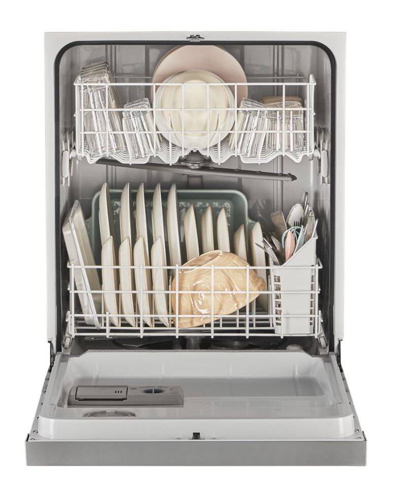 Quiet Dishwasher with Boost Cycle. Clean dishes with a 57 dBA quiet dishwasher. A Boost Cycle provides extra effort for stubborn messes while an Extended Dry Option elevates drying performance. This fast dishwasher includes a Quick Wash Cycle that cleans dishes quickly and a Triple Filtration Wash System that filters food particles and cleans the water between wash stages.