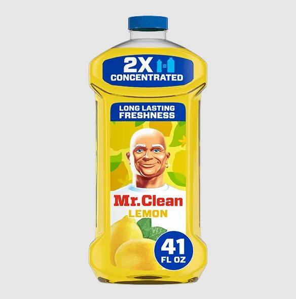 Mr. Clean’s 2X Concentrated* Liquid formula muscles through 100% of dirt and grease for powerful, multi surface cleaning. This floor cleaner for mopping is great for cleaning linoleum, tile & hardwood floors**. Use Mr. Clean all purpose cleaner all around the house to clean toilets, sinks, and bathtubs. This multi surface cleaner even works outside on garbage cans, doors, and more. It makes cleaning your house that much easier and leaves the long lasting freshness of lemon scent behind. Add Mr. Clean to your arsenal of cleaning supplies today! *vs. Mr. Clean Original **use diluted only