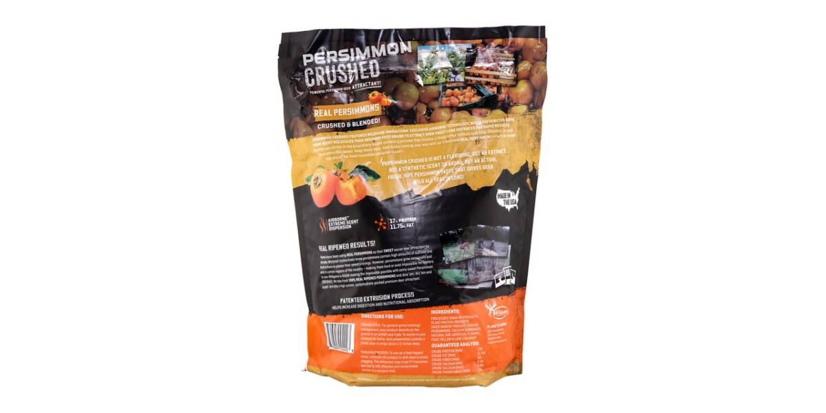 Persimmons are incredibly effective at pulling in deer, but they’re difficult to find and often messy or inconvenient to use. Now there’s Persimmon Crushed, combining the natural attracting power of real persimmons with a high-protein, carbohydrate-packed proprietary base. The powder is double screened to create a finely sifted formula that absorbs and releases with long-range, in-your-face power. Airborne Technology™ adds more distance and speed by distributing 600% more scent molecules than ordinary feed grains. All that with an irresistible persimmon taste makes this one of the most incredible attractants ever.