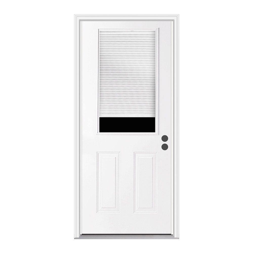 36-Inch X 80-Inch Steel Half Lite with Mini Blinds Left Hand Prehung Exterior Door with Brickmould