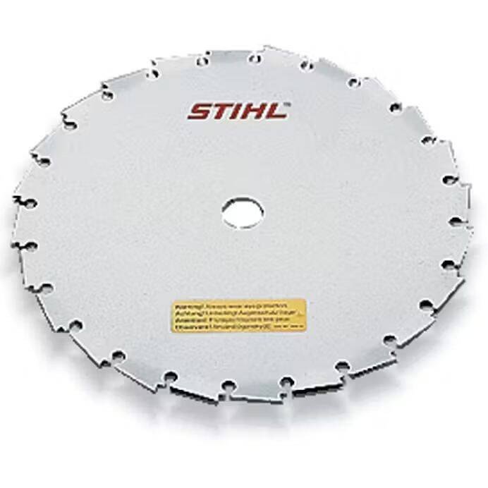This high-performance steel blade is designed for professionals and should be used with a brushcutter equipped with bicycle handles, a double shoulder harness, and limit stop. Not only can it thin and clear woody materials, it can also be sharpened in the field with a round file and guide. This is just one of a variety of cutting heads and blades available.