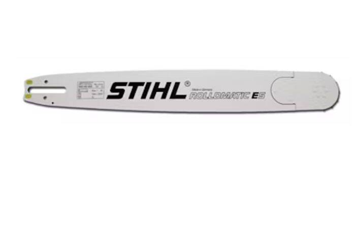 The STIHL ROLLOMATIC® E Super guide bar is a solid-machined bar made of high-grade steel with the groove milled out and a replaceable sprocket nose assembly riveted in place. The sprocket is incorporated in the replaceable sprocket nose assembly of the bar and carries the saw chain from the top to the bottom of the bar. This not only reduces wear, but also enables the bar nose to be made considerably narrower. This type of construction is an advantage where extensive use is made of the bar nose (i.e. limbing and boring). All STIHL ROLLOMATIC® bars designed with a narrow nose help reduce kickback tendencies. And the sprocket nose assembly can be replaced several times before the whole bar is due for replacement, increasing the service life of the bar.