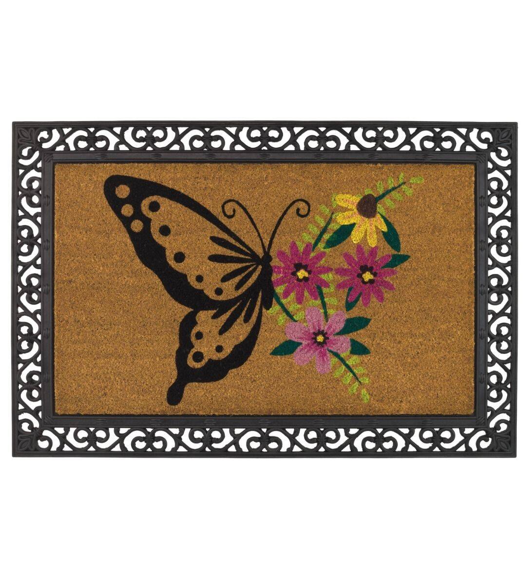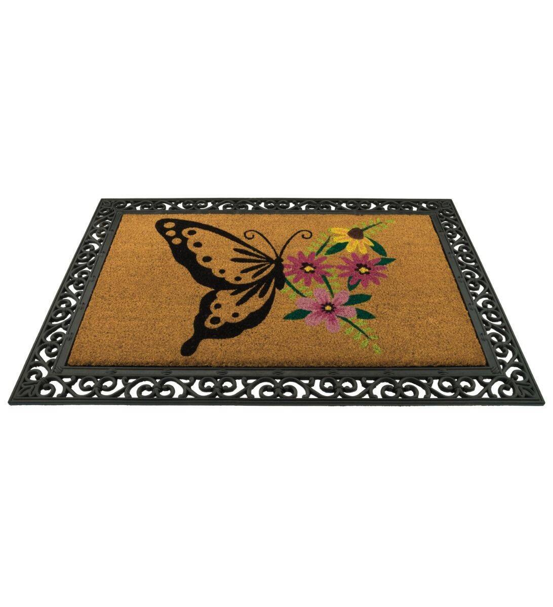 24-Inch x 36-Inch Coir And Rubber Doormat With Butterfly