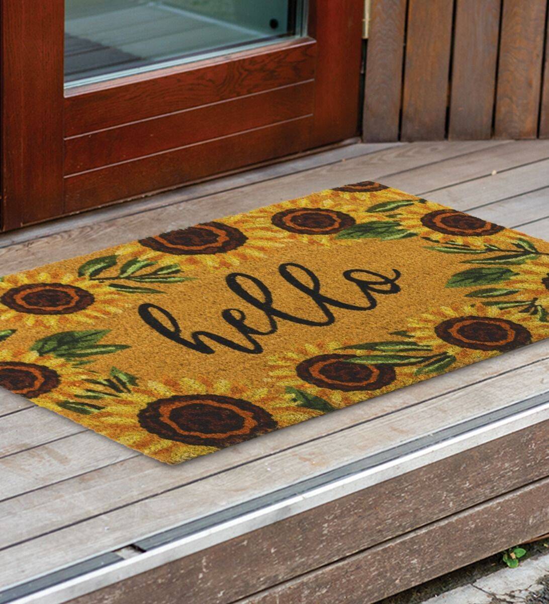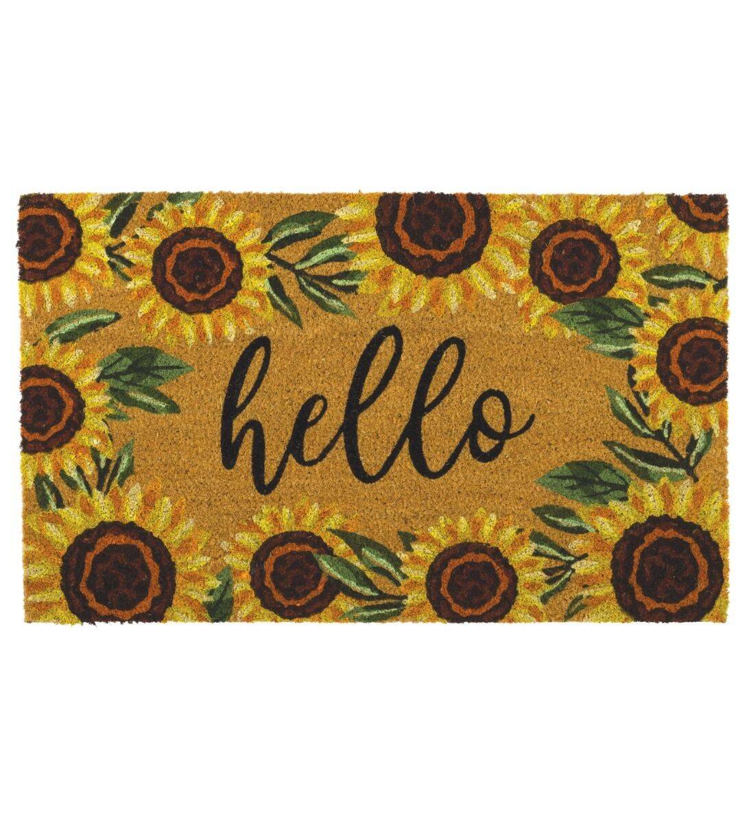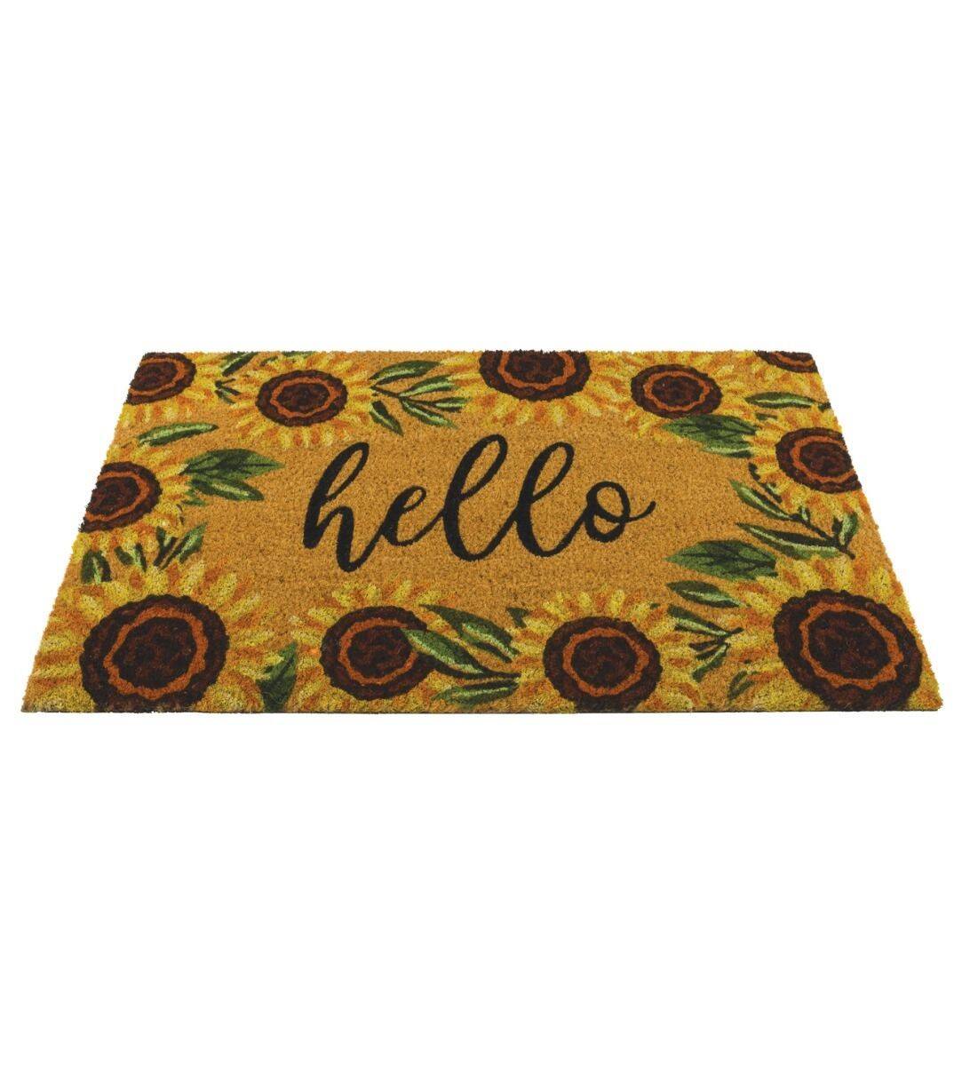 18-Inch x 30-Inch Coir Doormat With Hello Sunflower
