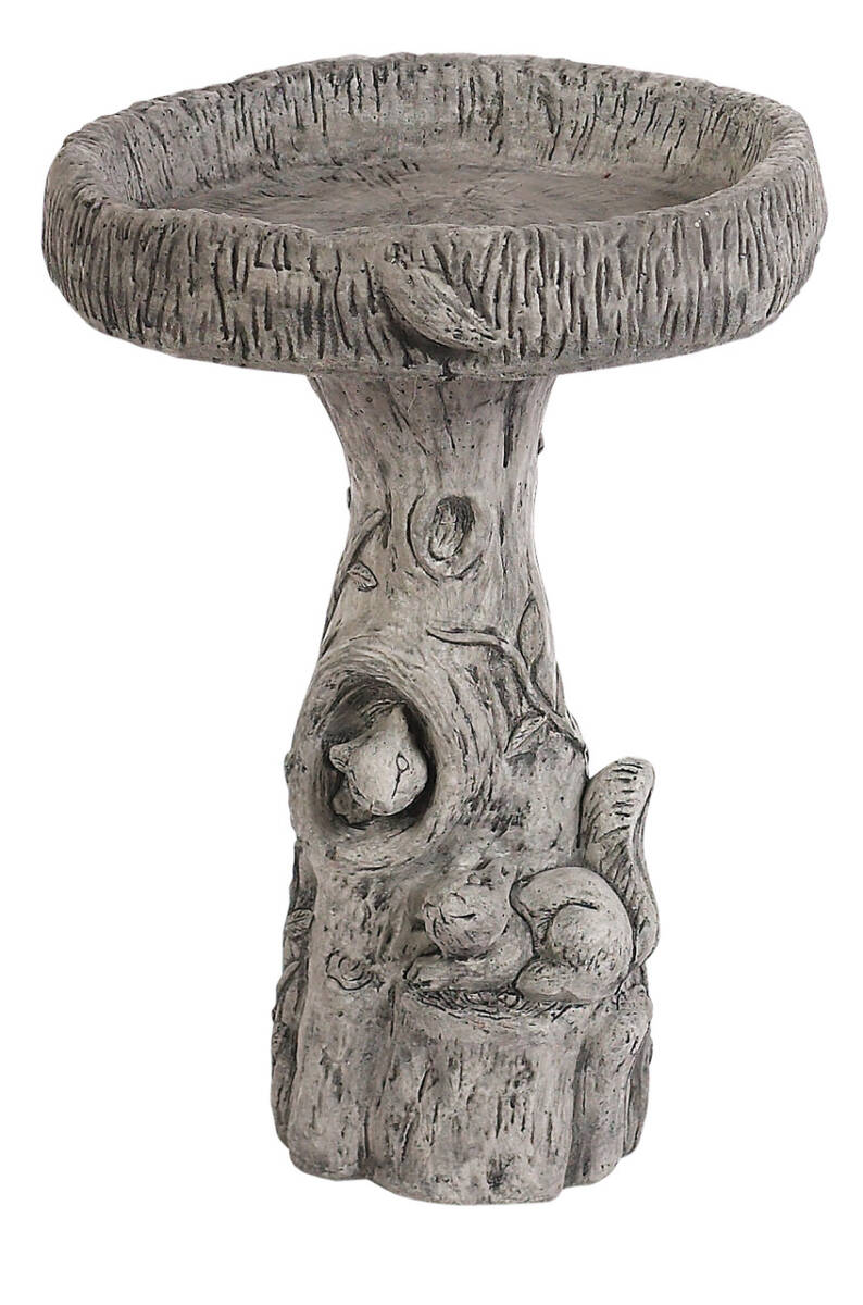 Pre Aged Tiny Fancy Squirrel And Wood Birdbath