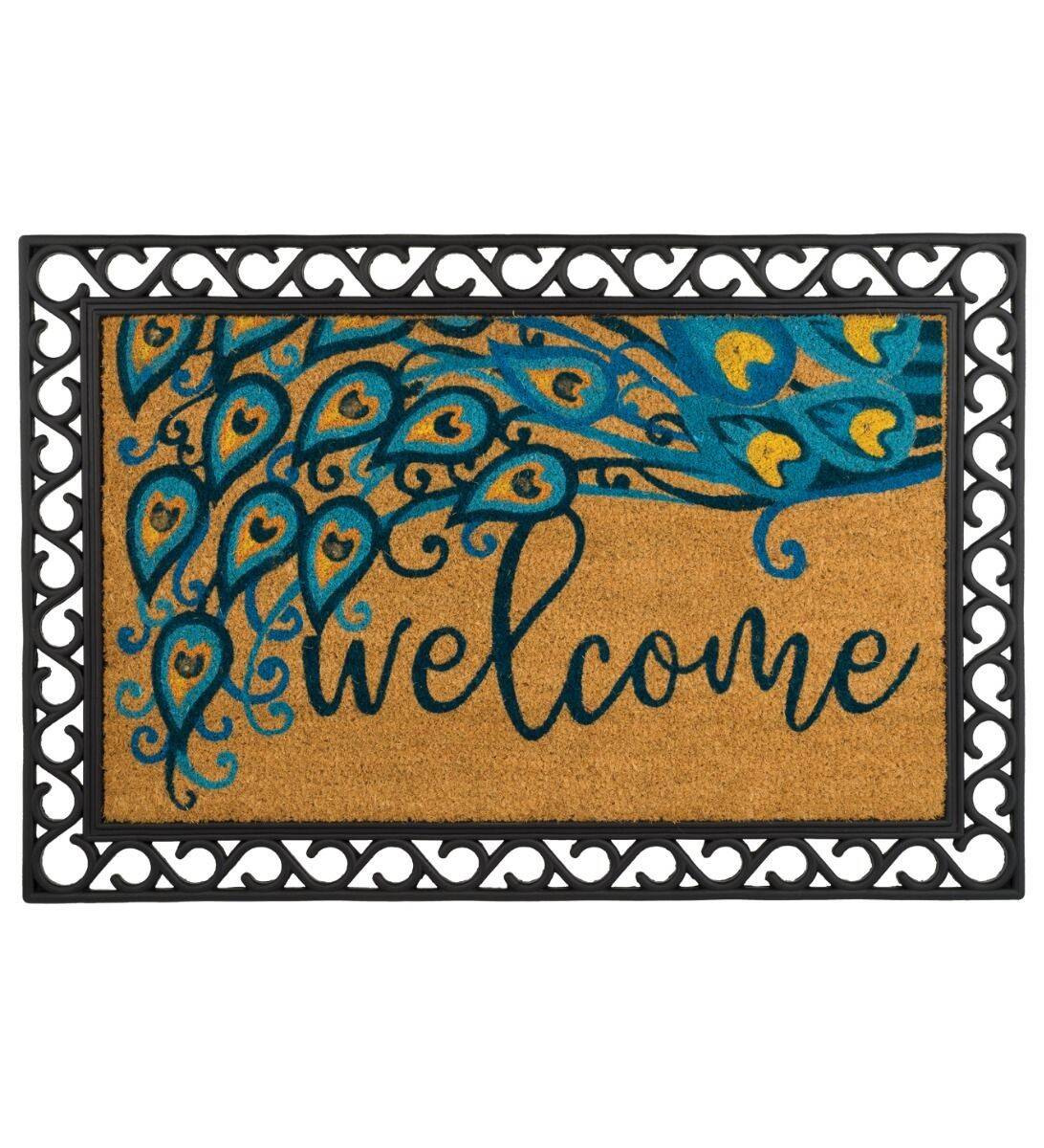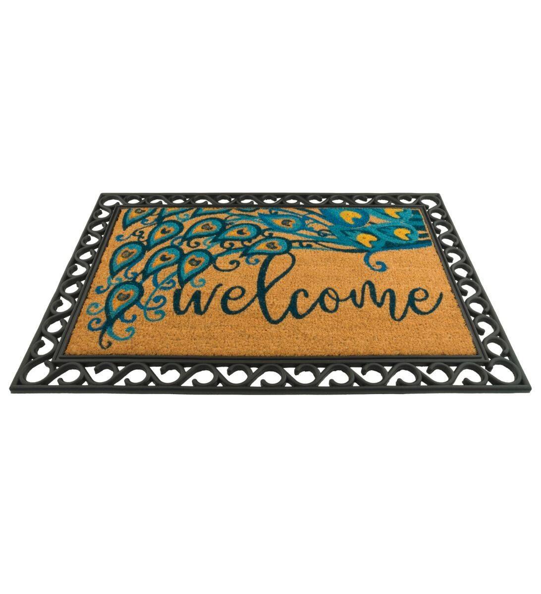 24-Inch x 36-Inch Rubber Framed Coir Doormat With Led Lights And A Peacock