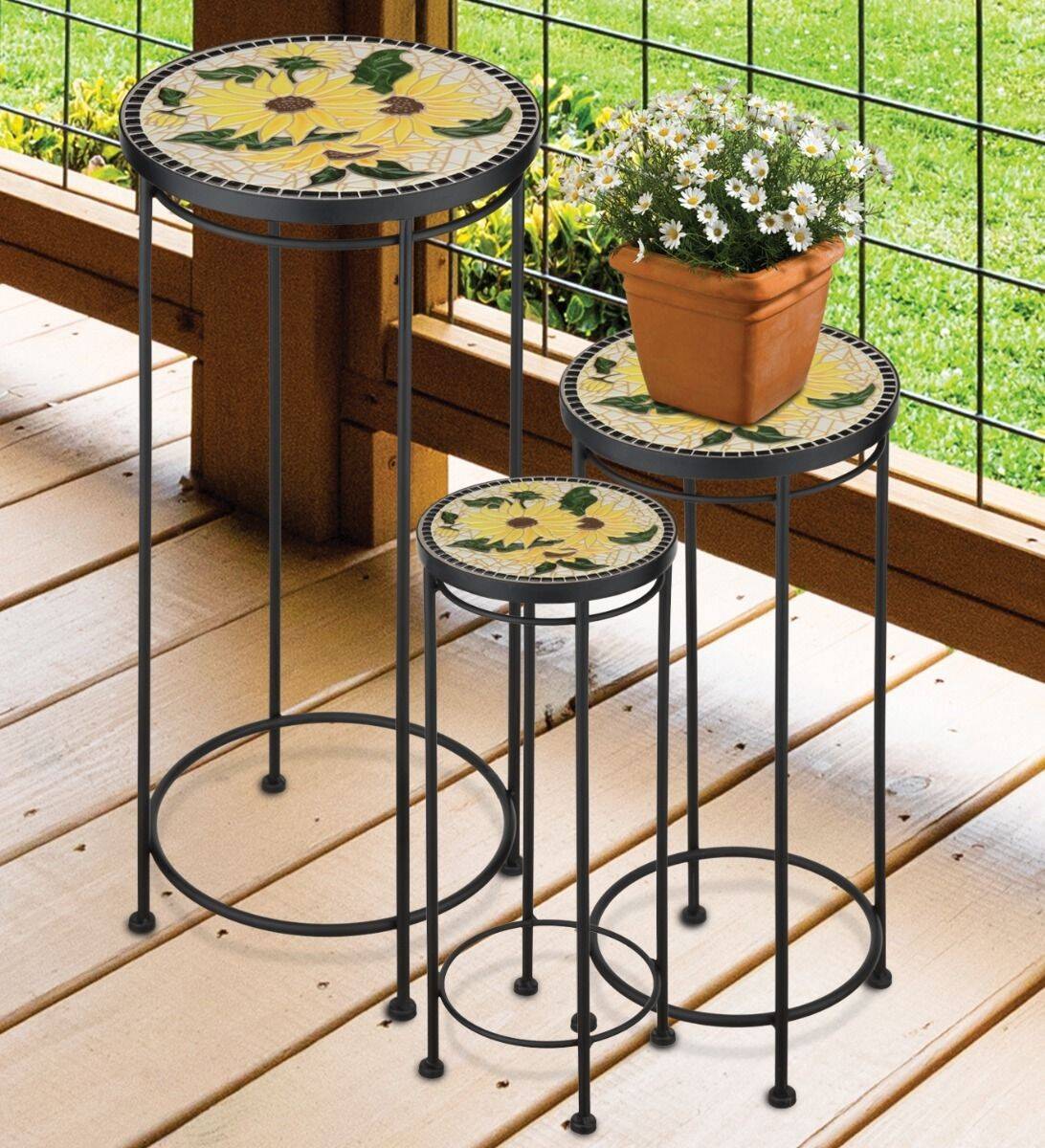3 Tall Nesting Plant Stands With A Ceramic Sunflower
