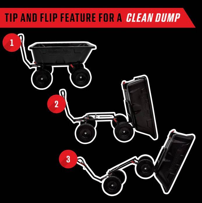• High-capacity towable poly cart can haul as much as 16 cubic feet of material and loads as heavy as 1800 pounds