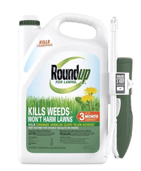 RoundupĀ® For Lawns is a ready-to-use tough weed killer for Northern grasses that kills weeds, roots and all (when used as directed), with up to 3 month weed control (as listed)