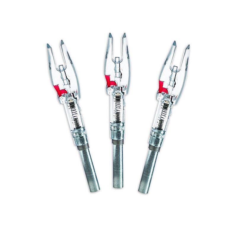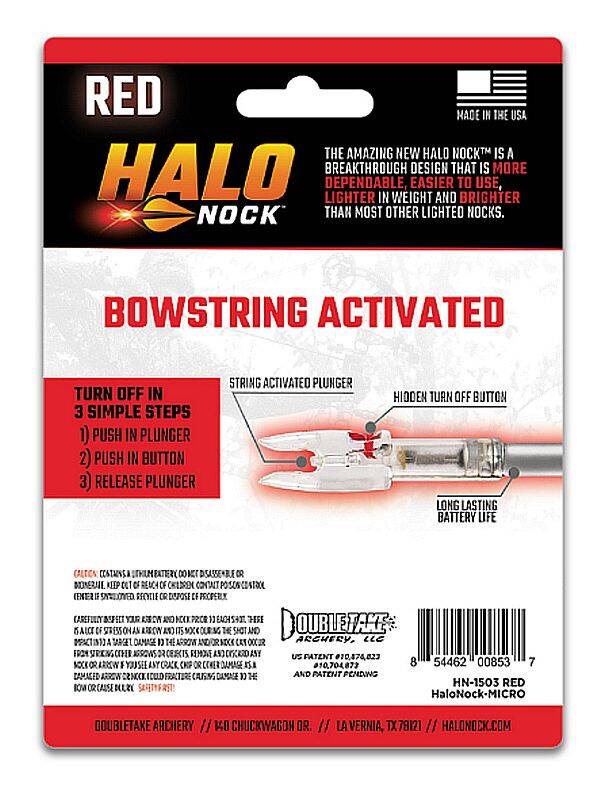 Halo Nocks provide superior, dependable performance with every shot. Their patented design wont accidentally turn on when placing on your bowstring. No matter how hard you push on the nock, it won’t activate until it leaves the string. In addition, this innovative design avoids any risk of a “mini-dry fire” that can occur with other lighted nocks that slip forward during release. The Halo Nock is refreshingly simple to use and available in a variety of colors and sizes.
