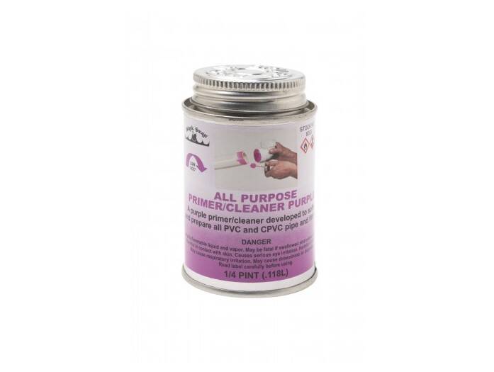 Black Swan's All Purpose Primer/Cleaner (Purple) is a purple, non-bodied, fast acting solvent used to soften, clean and prepare plastic pipe and fittings prior to assembly. All Purpose Primer/Cleaner can be used with all types, schedules and classes of PVC and CPVC pipe and fittings.