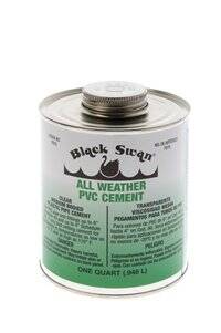 Black Swan's All Weather PVC Cement - Medium is a clear, regular bodied, very fast set, very high strength PVC solvent cement used to join PVC pipe and fittings. For all classes and schedules of pipe and fittings through 6" diameter. All Weather PVC Cement - Medium is specially formulated for use in temperatures down to 5° F. Sets up faster than regular PVC cement and remains free flowing at -15° F. All Weather PVC Cement is most effective when used in temperature ranges from 5° F to 100° F.