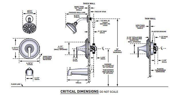 - Install with Posi-Temp® pressure balancing control valve to maintain water temperature control in the shower