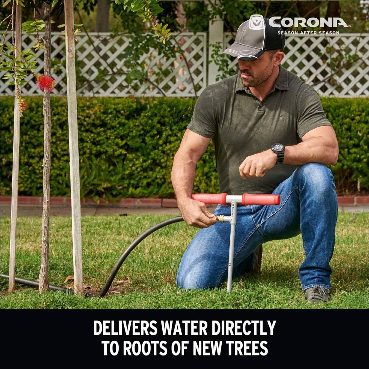Corona Root Irrigator provides water or fertilizer directly to the roots for healthy growth and prompts trees to grow roots deeper and further from trunk for longevity while eliminating water runoff and evaporation.