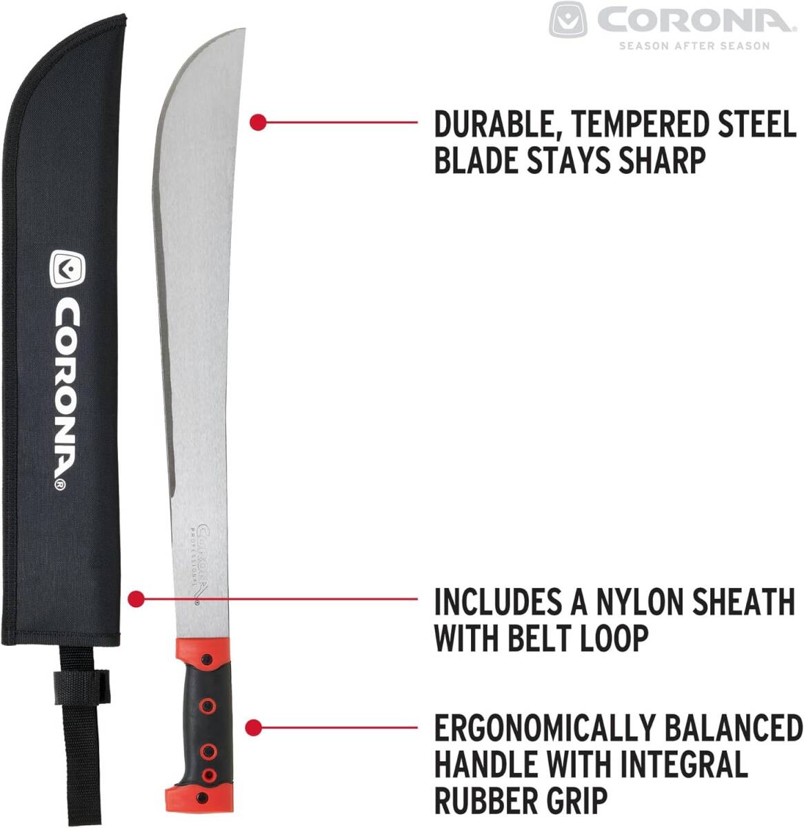 Every gardening pro needs a powerful tool like this 18-in. ErgoHandle Machete with Nylon Sheath. Quickly cut back unwanted or dense vegetation with its tempered steel blade and rubber-gripped, ergonomically balanced handle. When you’re done, simply place it in its nylon sheath on your belt loop for safe transport and storage. Discover everything our hand tools collection has to offer. From gardening to landscaping, Corona Tools covers it all. Digging, cutting, weeding, pruning—you name it, and we’ve got a hand tool for it.