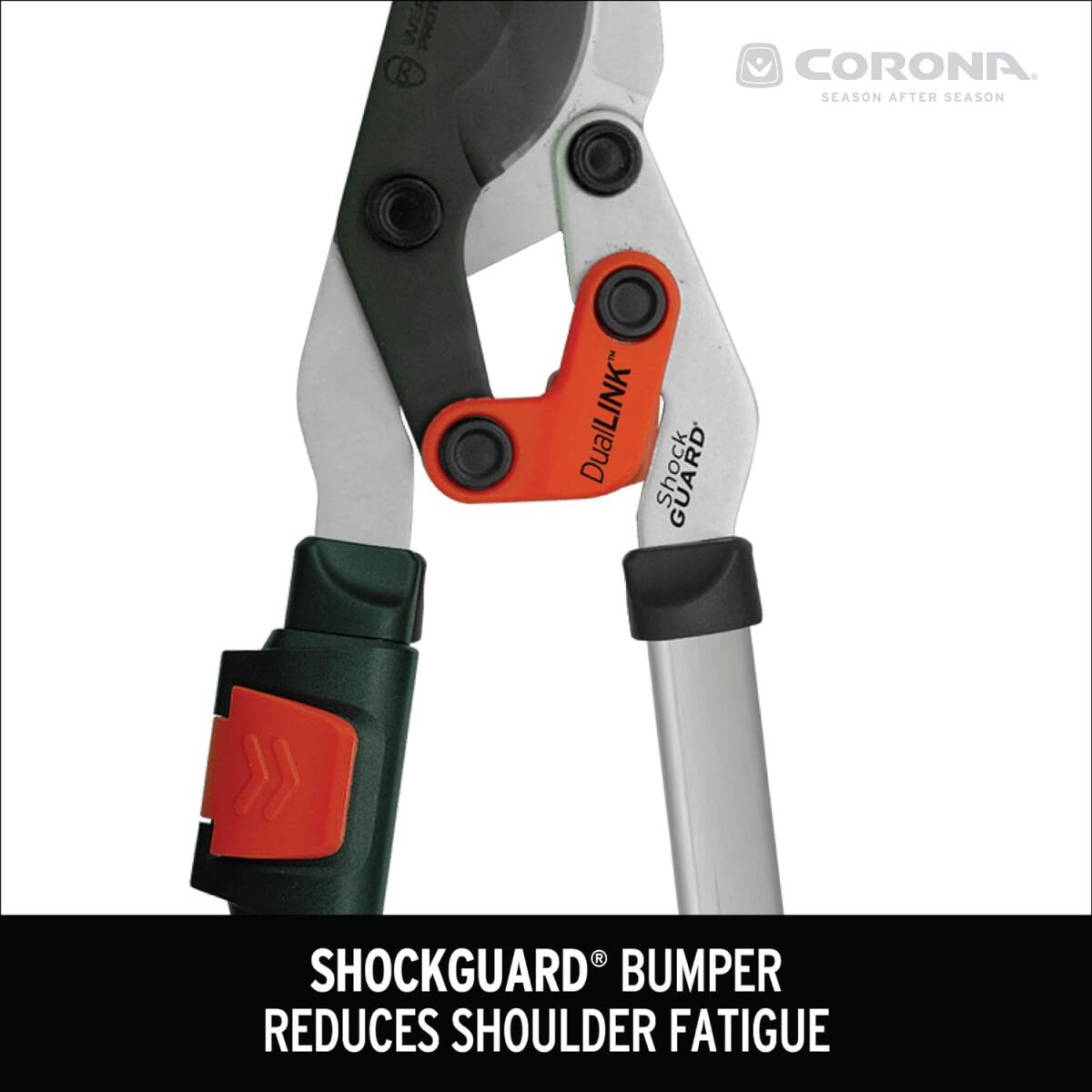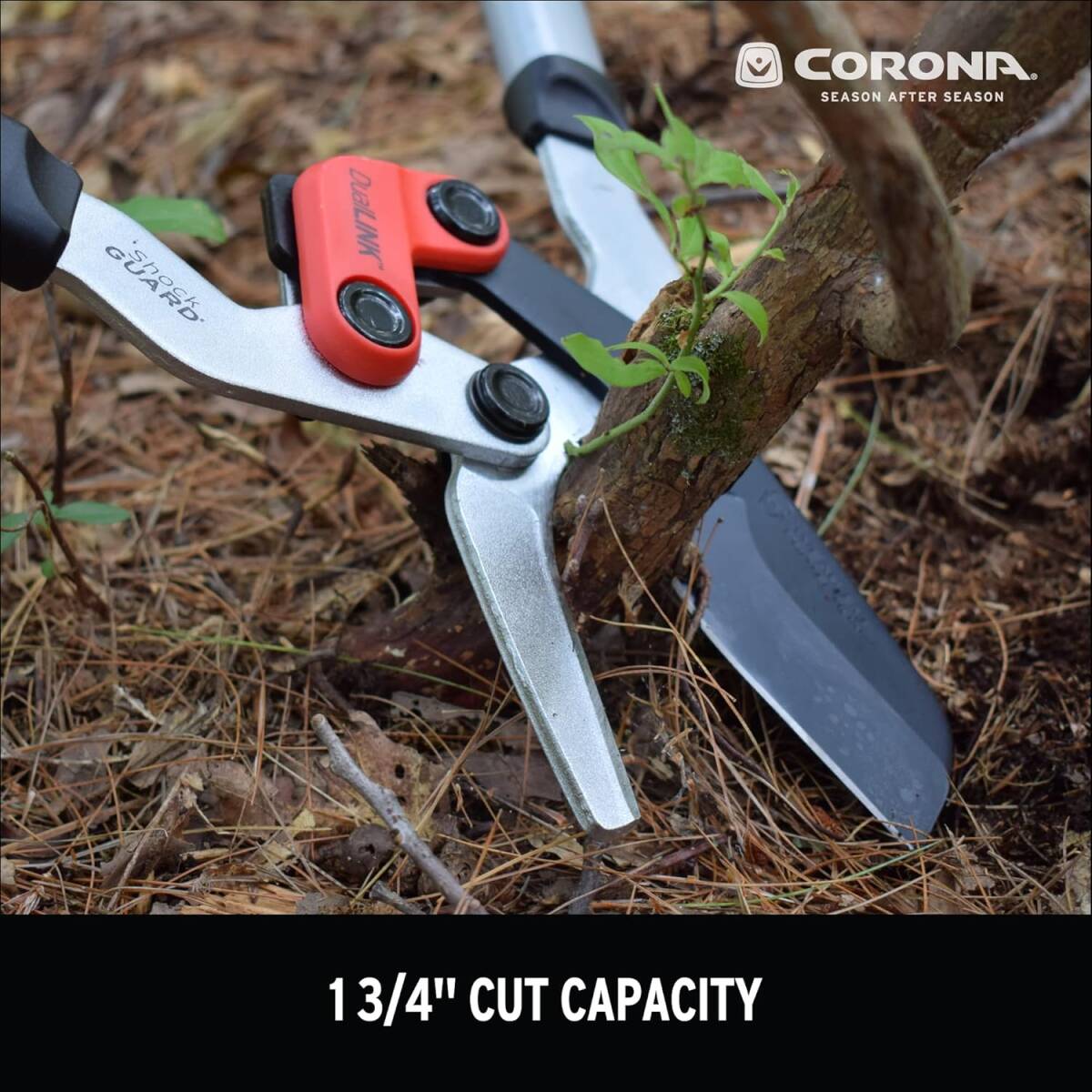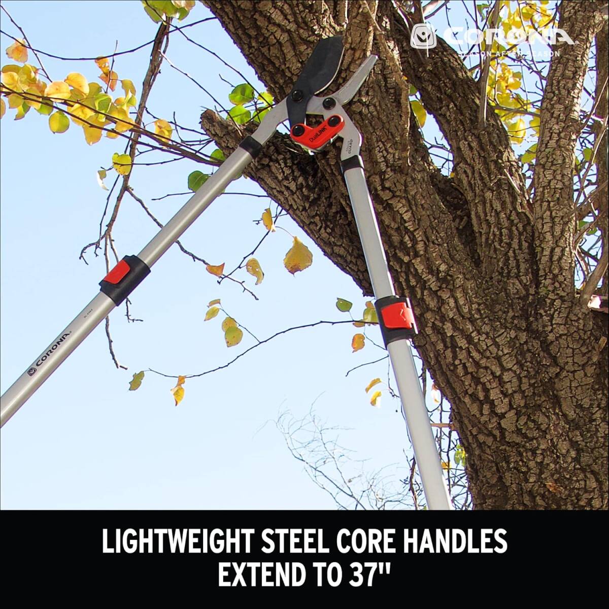 Tackle yard work faster than ever with the Corona DualLINK™ Extendable Bypass Lopper. These loppers feature lightweight steel core handles that extend up to 37 ½-inches, giving you the length you need for hard-to-reach branches, while still offering adjustable control for low branches. The power-compounding DualLINK™ feature boosts each cut, so you can do 35% more work with less effort than when using a traditional branch cutter, while the ergonomic ComfortGEL® grips and Shock Guard® bumper reduce the risk of fatigue and shoulder strain. Easily cut through green or dry branches up to 1 ¾-inches in diameter with the help of specially coated non-stick bypass blades that stay sharp cut after cut. Whether you’re a professional landscaper or a gardener looking for an easier way to maintain your yard, this tree pruner is the perfect addition to your yard tools.