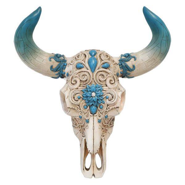 11-1/2-Inch Tooled Skull With Bone Color Horns