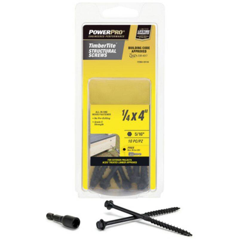 1/4 X 4-Inch Power Pro Timbertite Structural Timber Screws 10-Pack