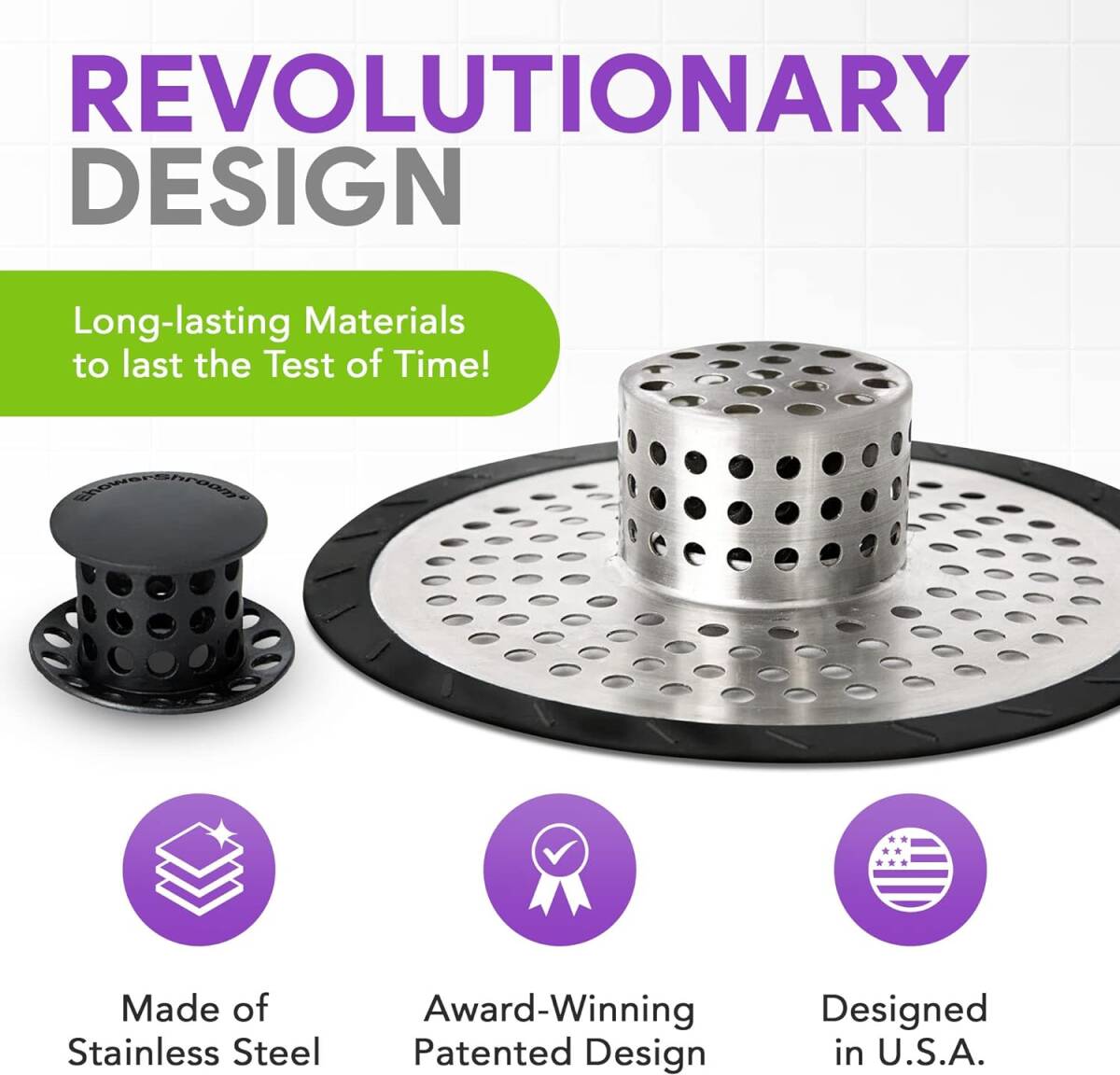 ShowerShroom® Ultra Revolutionary Stainless Steel Drain Protector, Hair Catcher, Strainer