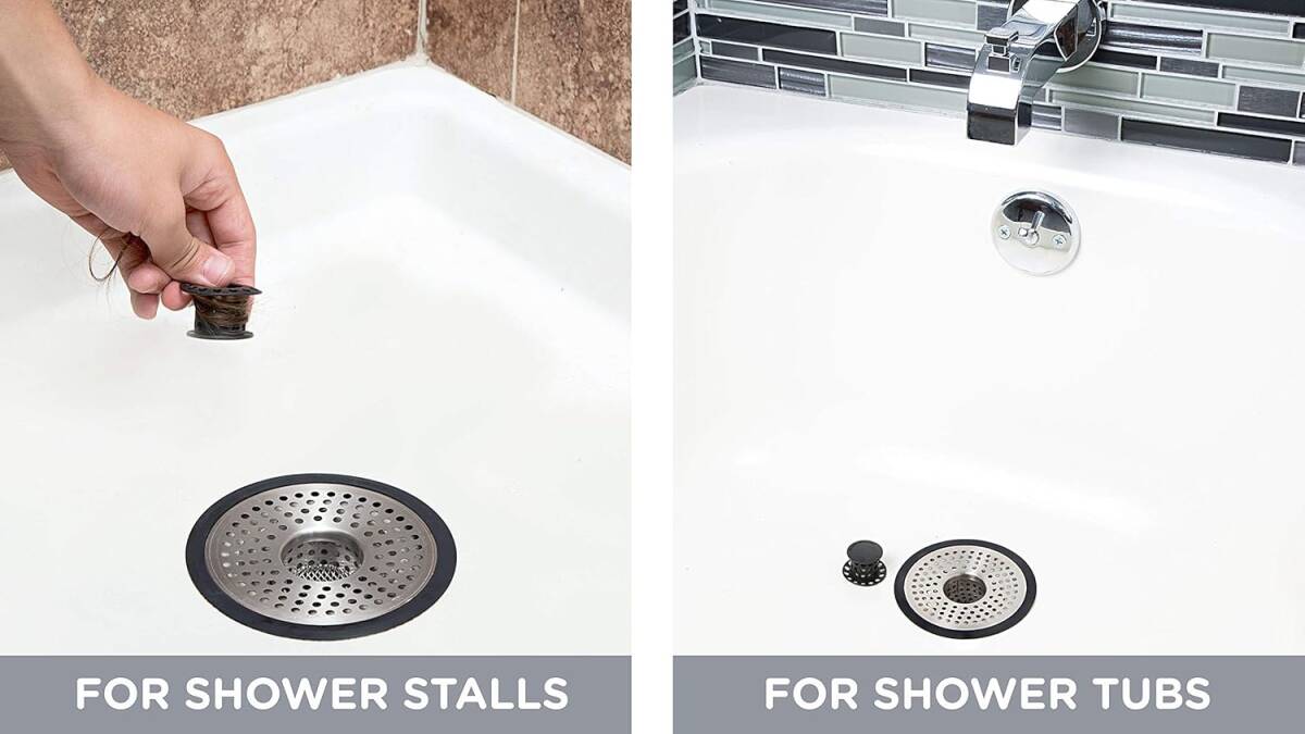 No More Clogged Drains: Our stainless steel ShowerShroom shower stall hair catcher fits in most round or square shower grate drains. ShowerShroom Ultra effortlessly catches every hair out of site, while the water continues to flow freely. Fits most shower tubs drains, too.  Save time and money on pricey plumber visits--no more clogged drains.