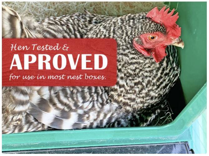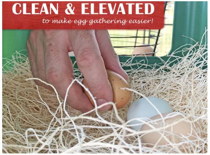 - Collecting eggs is easy: eggs often get buried in straw or pine shavings but excelsior nest box pads help keep eggs elevated for easier gathering